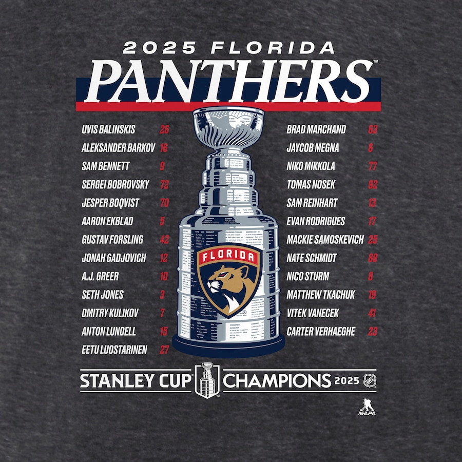 Florida Panthers férfi póló 025 Stanley Cup Champions Give & Go Roster Heather Charcoal