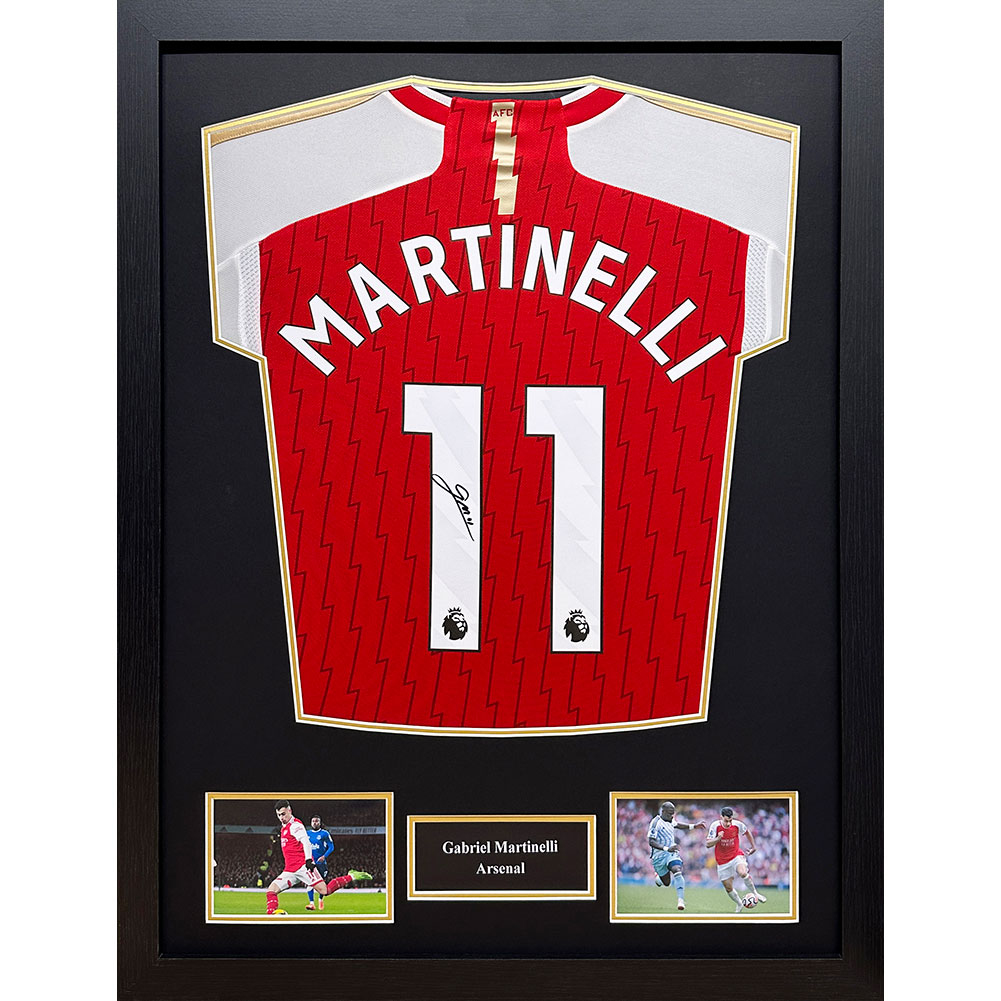 Legendák bekeretezett mez Arsenal FC 2023-2024 Martinelli Signed Shirt (Framed)