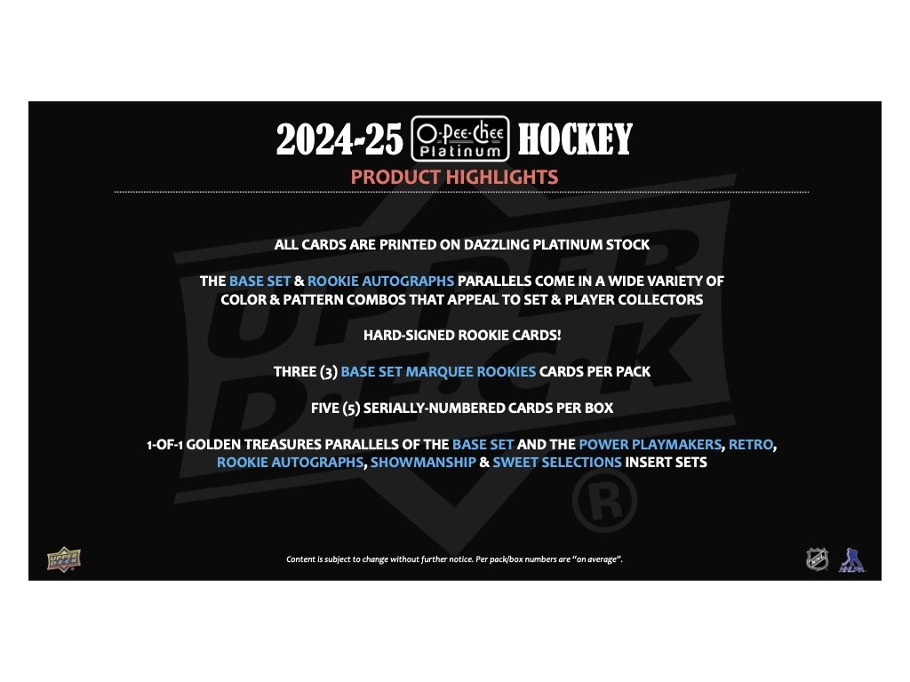 NHL dobozok NHL hokikártyák 2024-25 Upper Deck O-Pee-Chee Platinum Hobby Box
