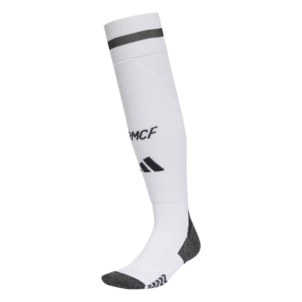 Ezek a fehér sportzoknik ideálisak a Real Madrid klub futballrajongói számára. Fekete részletekkel és az ikonikus klublogóval a vádlin, ezek a zoknik ötvözik a stílust és a funkcionalitást.